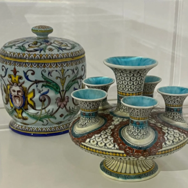 Si la faïence resta son matériau de prédilection, il s’intéressa aussi à la porcelaine, notamment après 1880.