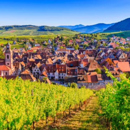 Colmar doit aussi sa renommée à sa position idéale : en plein cœur de la plaine d’Alsace, à quelques kilomètres du Rhin, entourée de rivières, blottie entre le vignoble alsacien et les contreforts vosgiens. Son climat sec et ensoleillé en fait un paradis pour la vigne, d’où son titre honorifique de capitale des vins d’Alsace.