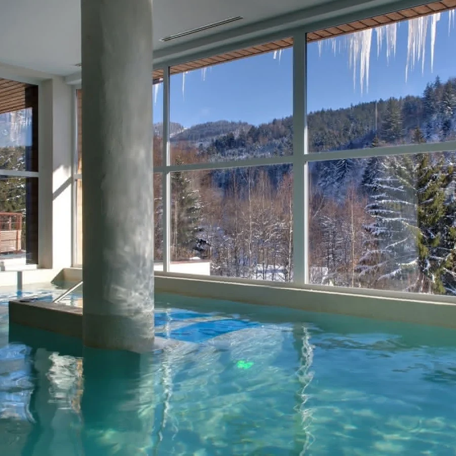 Un espace spa et bien-être d’exception en Alsace. Un havre de paix de 1 000m² au coeur de la nature à Jungholtz dans le Haut Rhin. Vous pourrez profiter d’une piscine intérieure et extérieure chauffée à 33°C entourée de la forêt Vosgienne. Vous pourrez nager dans un cadre dépaysant.